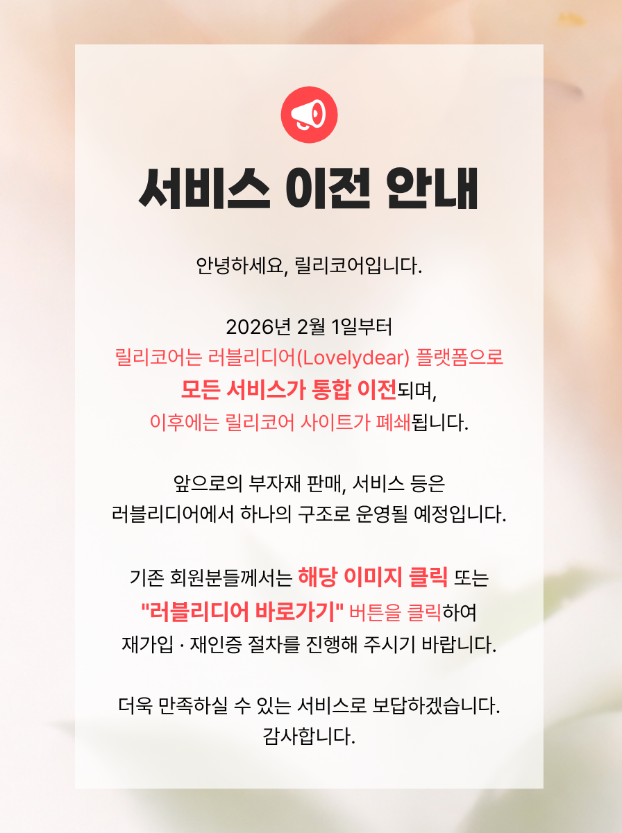 기존 회원님들께서는 러블리디어 사이트 재가입 & 재인증 부탁드립니다.